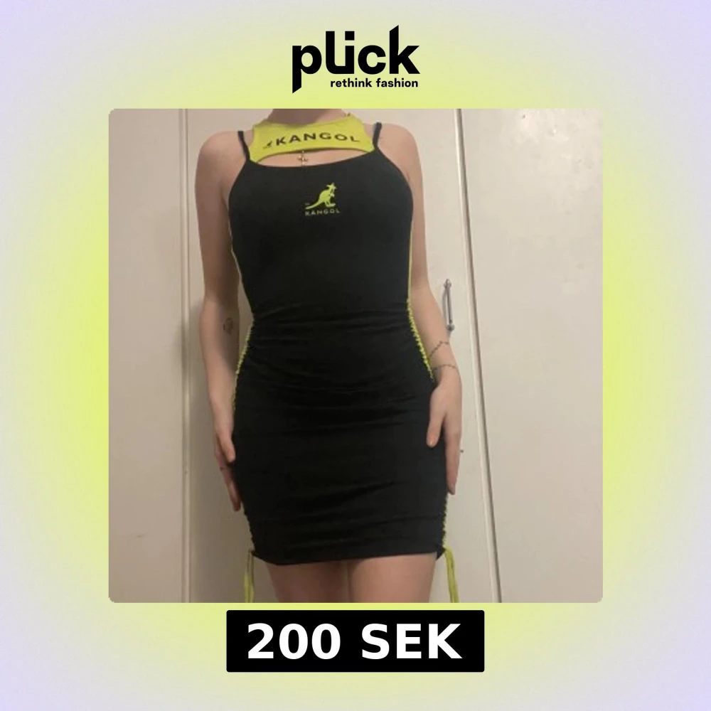 Supersnygg svart kortklänning från Kangol med limegröna detaljer och logga framtill. Klänningen har smala axelband, tight passform och cool snörning i sidorna. Materialet är stretchigt och känns sportigt. Perfekt för dig som vill sticka ut med en unik look!