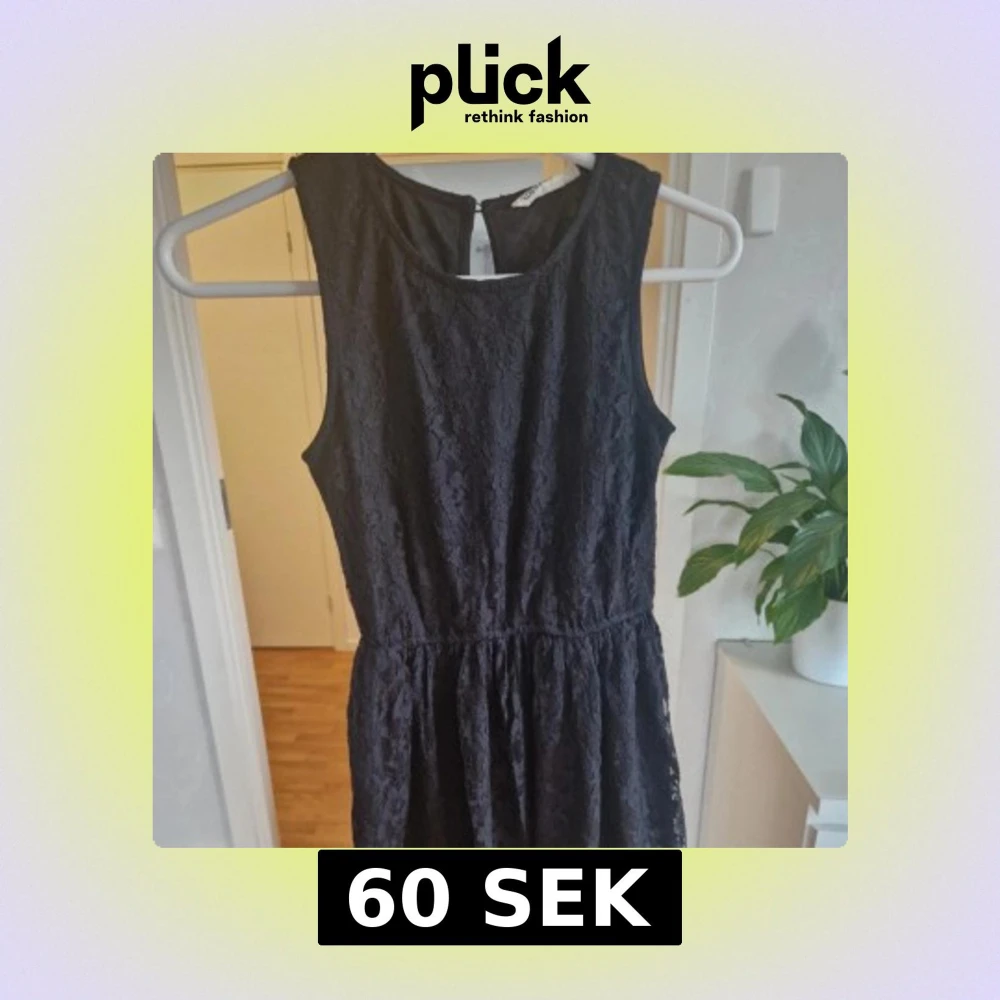 Supersnygg svart kortklänning från KappAhl med blommig spets och ärmlös design. Klänningen har rund halsringning och en liten knapp i nacken. Perfekt för dig som gillar klassisk stil med en twist.