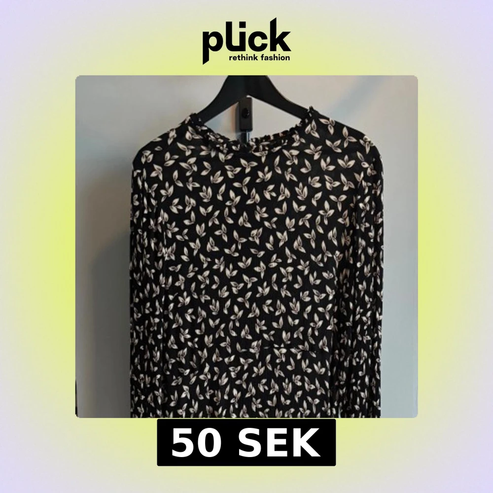 Svart långärmad klänning från KappAhl med vitt blommönster. Klänningen har rund halsringning och dragkedja i ryggen. Materialet är lätt och faller snyggt, perfekt för dig som gillar en stilren men ändå lekfull look.