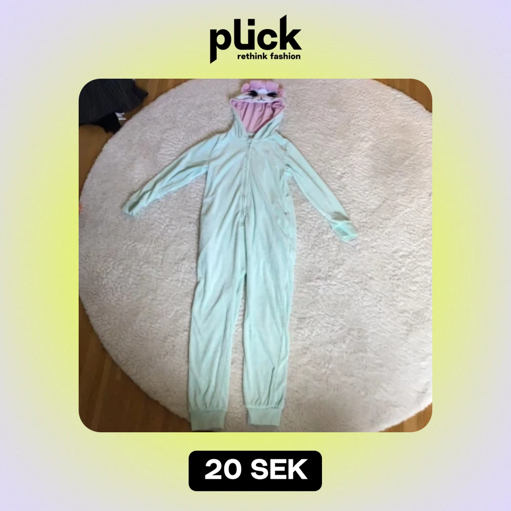Säljer en turkos och rosa onepiece. Mus med rosett, öron, morrhår, nos och ögon. Dragkedja på framsidan, fickor. Kappahl storlek 134/140-hittar ingen lapp med storlek.