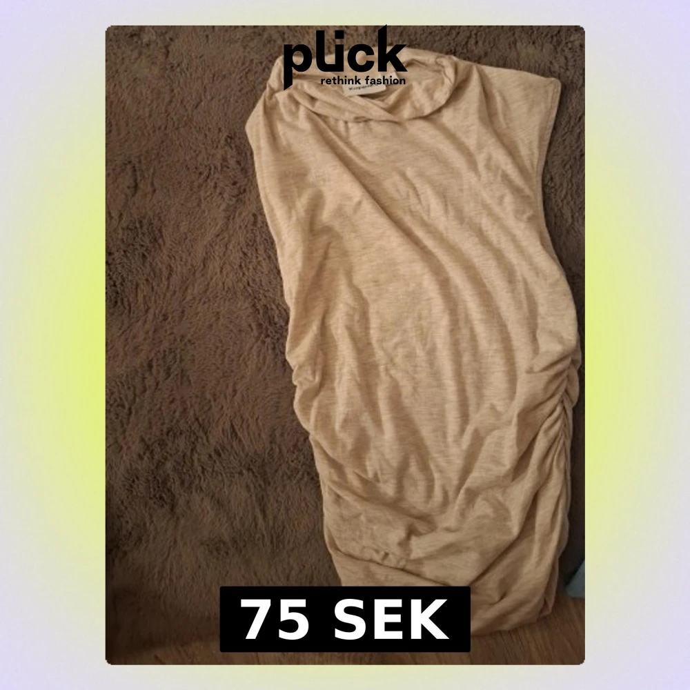 Snygg beige ärmlös topp från Kappahl med lätt rynkade detaljer på sidan. Tillverkad i mjukt material och har en avslappnad passform med rund halsringning. Perfekt att styla med jeans eller kjol.