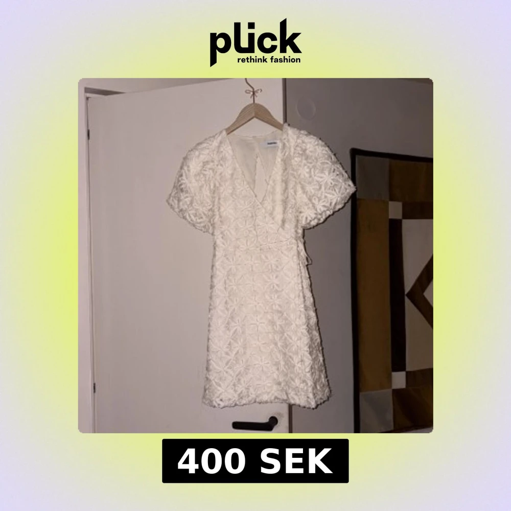 Supersöt vit kortklänning från Kappahl i storlek XS. Klänningen har blommigt broderat tyg, omlott med v-ringning, puffiga kortärmar och en fin knyt-detalj i sidan. Öppen rygg ger en extra touch. Perfekt för sommarens alla tillfällen! Köpt för 950 kr och endast använd 1 gång vid konfirmation.