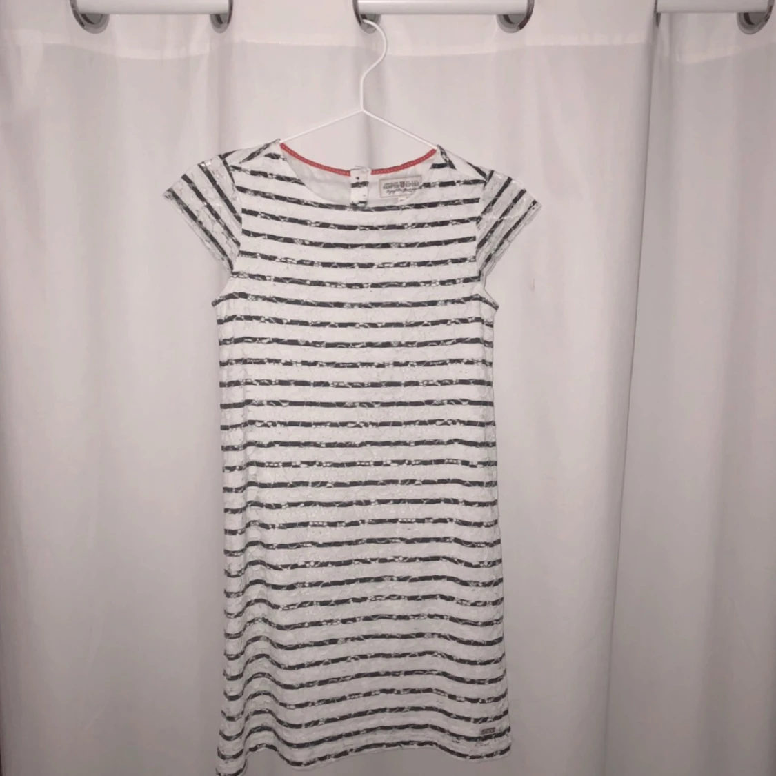 Vit/marinblå ranglig klänning. Använd 2 ggr. Köparen står för frakt