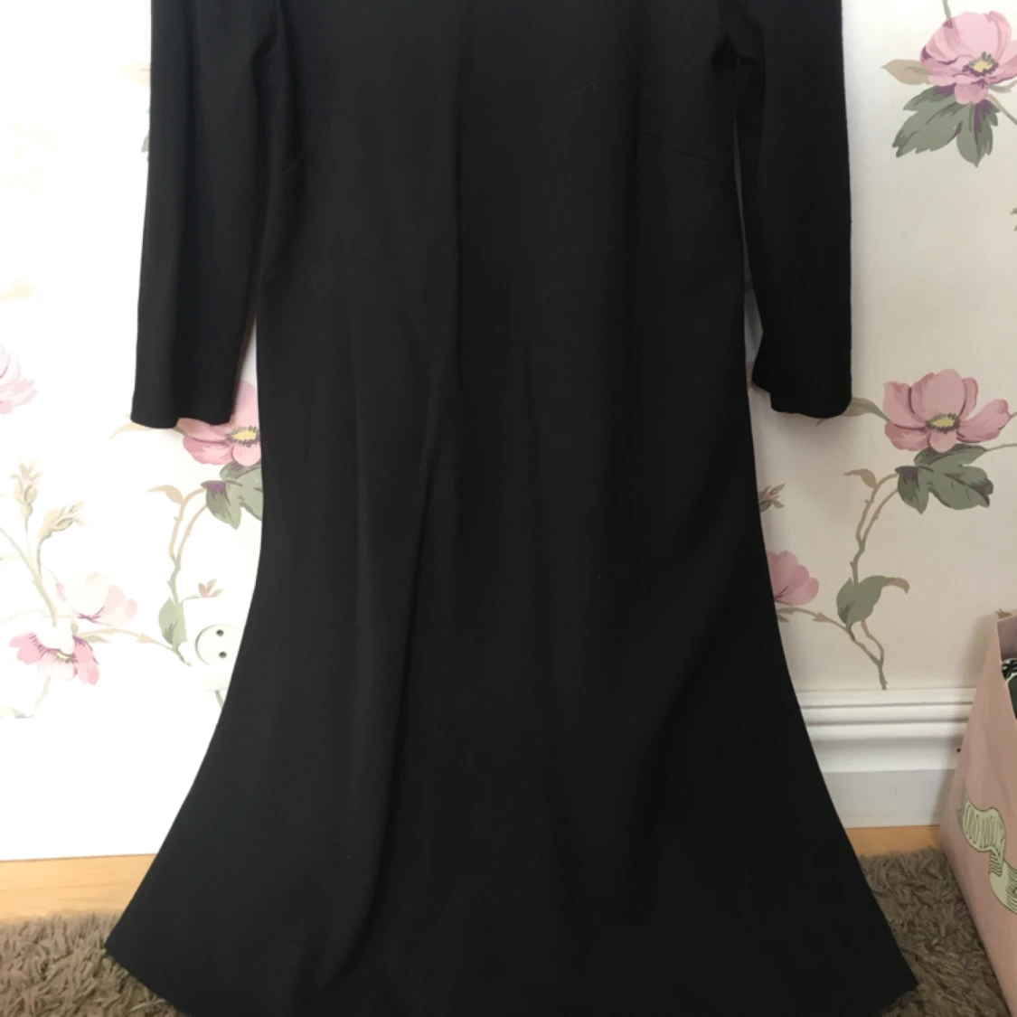 Svart kort klänning med en fin liten krage. Stängs med två knapar i nacken, figursydda sömmar runt revbenen. Använd endast ett fåtal gånger.