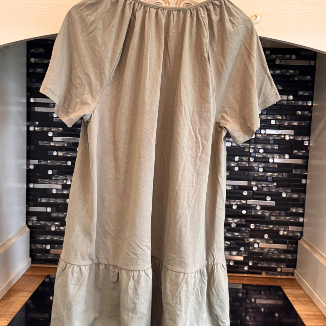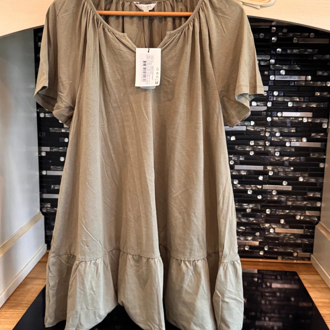 Säljer en chill khakigrön klänning från Cellbes med rundad hals och korta ärmar. Klänningen har en loose passform och volangdetalj längst ner för extra flow. Tillverkad i mjuk bomull, perfekt för varma dagar. Enkel och snygg design som är lätt att matcha.