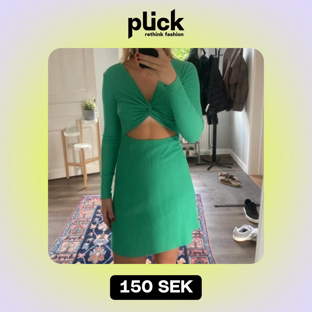 En grön, ribbad klänning från Only i storlek S. Använd 1 gång