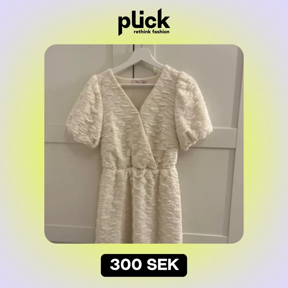 fin klänning, cremefärgad i nytt skick. Använd en gång. Nypris 600kr