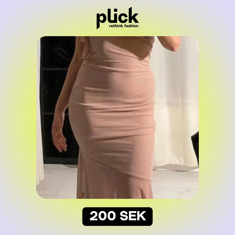 En vacker klänning i en mjuk rosa färg med en elegant silhuett. Klänningen har en spetsad design vid axlarna och en flödande kjol. Den är perfekt för en festlig tillställning eller en romantisk kväll.passar även S