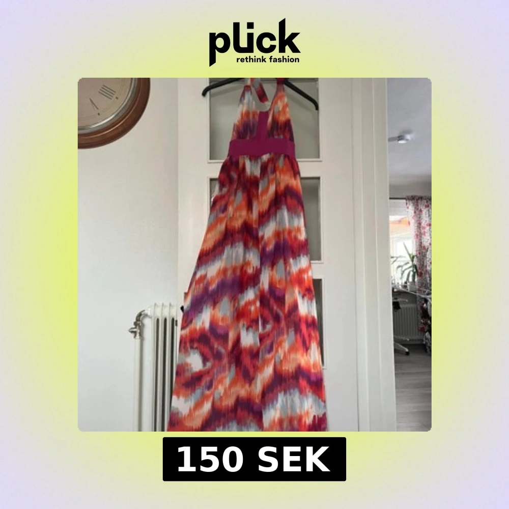 Säljer en färgglad långklänning med ett abstrakt mönster i lila, orange,rött,grått och vitt. Klänningen har en halterneck-design med knytband och en bred lila midja som ger en smickrande passform. Perfekt för sommarens festligheter! Öppen rygg! Storlek S men passar även M perfekt!🥂🪻🌺💋Nytt skick. Kontakta mig för fler bilder eller prisförslag!