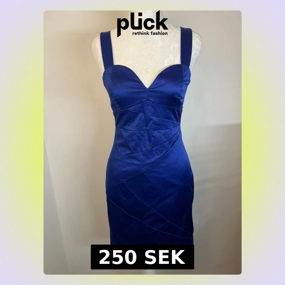Sjukt snygg klänning i storlek 36 (S) men passar även mig som vanligtvis bär XS. Klänningen har en figurnära passform och dragkedja i ryggen. Använd en gång och i utmärkt skick 💙