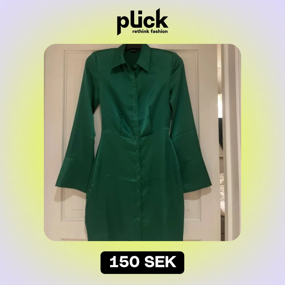 En superfin grön satin klänning från ginatricot, använd fåtal gånger. 💚