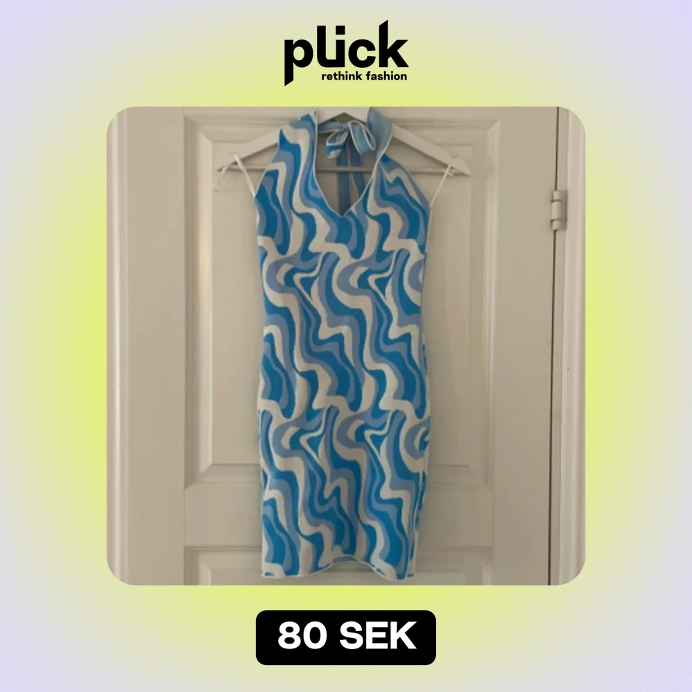 En blå och vit möstrad tight klänning. Är från Gina Trocot. Använd enstaka gång och har inga defekter.