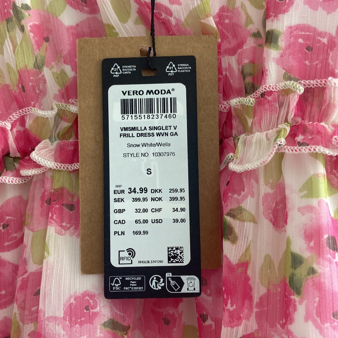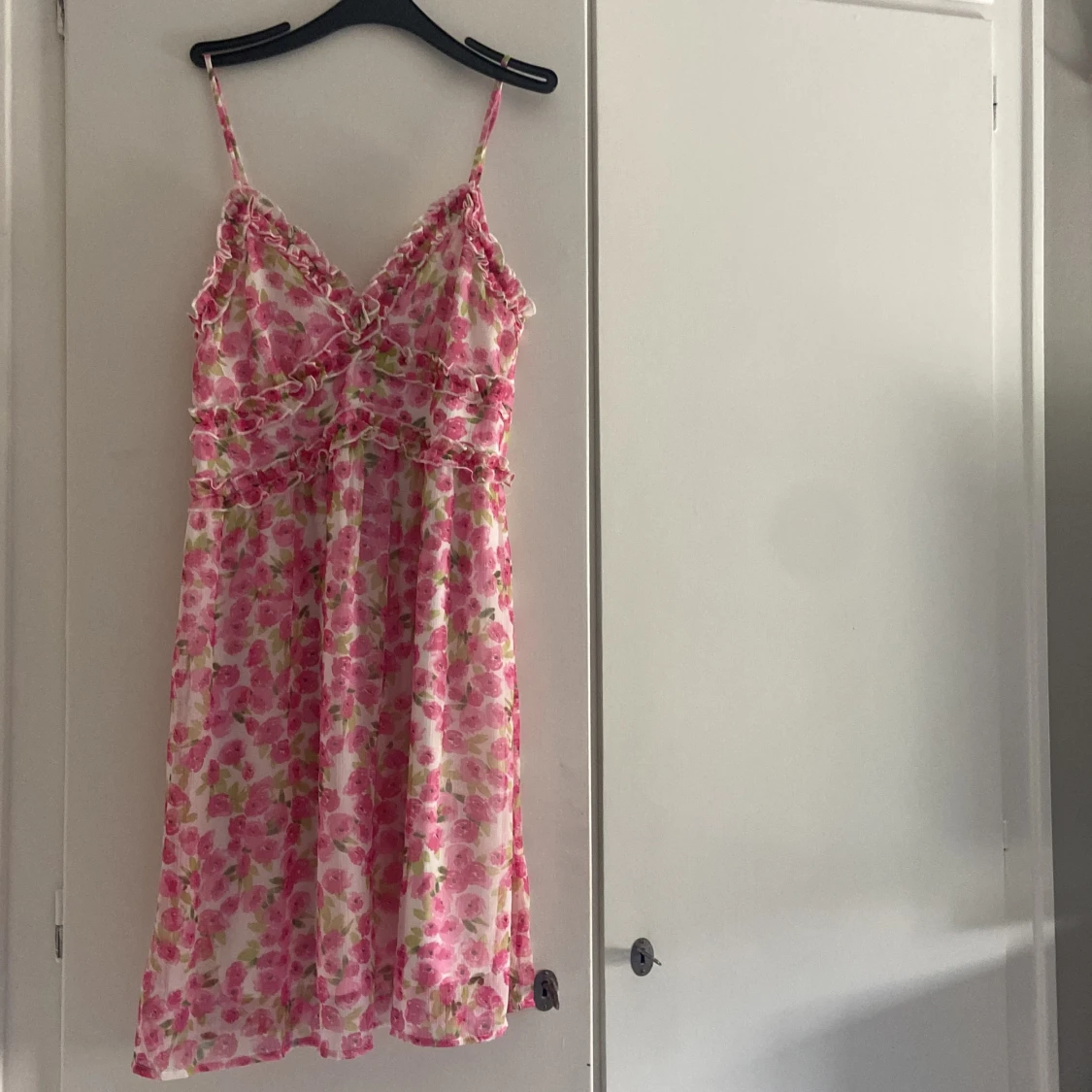 Säljer en jättefin blommig klänning i storlek S som aldrig har kommit till användning och prislappen sitter fortfarande på, pris går att diskutera, ordinarie pris 400kr