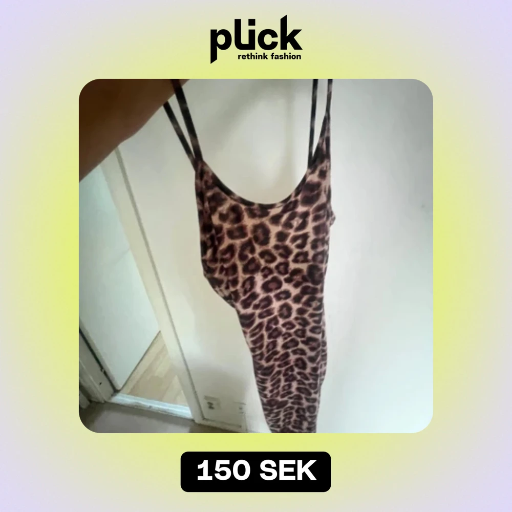 En lång leopard klänning som är använd max två gånger. Den har öppen rygg och är i väldigt skönt material. Jag älskar den men den är lite stor för mig då jag är en xxs/xs och den är mer en S/M. Skriv om ni undrar något eller vill ha fler bilder 🥰🌸