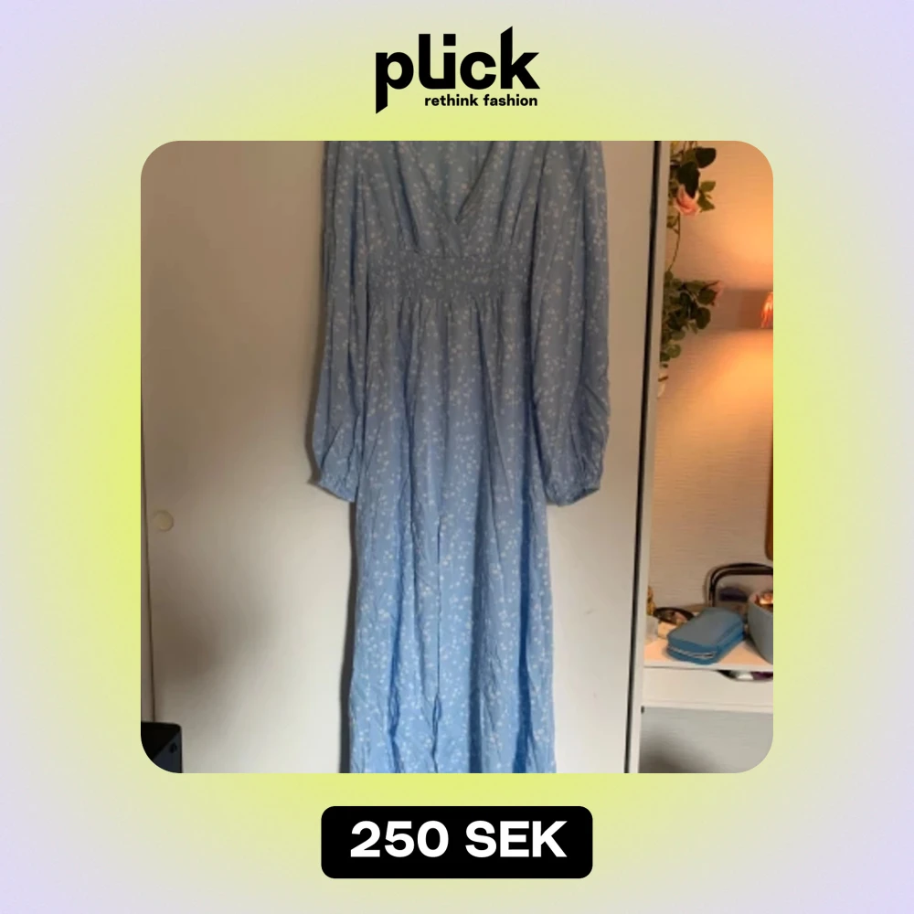 Blå långklänning med vit blommor från Nelly. Använd fåtal gånger och i nyskick. Storlek 38