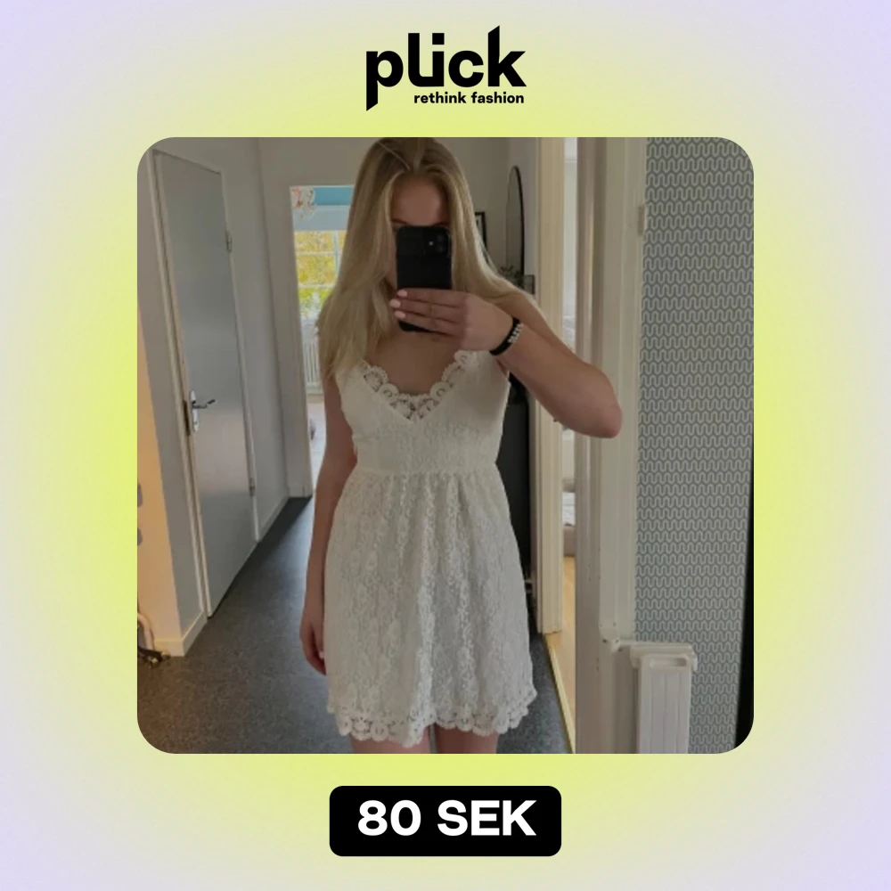 Vit söt klänning i spets som passar perfekt till studenten/skolavslutning. Säljer pågrund av att den är för kort för mig ( är 180) men är annars använd en gång.