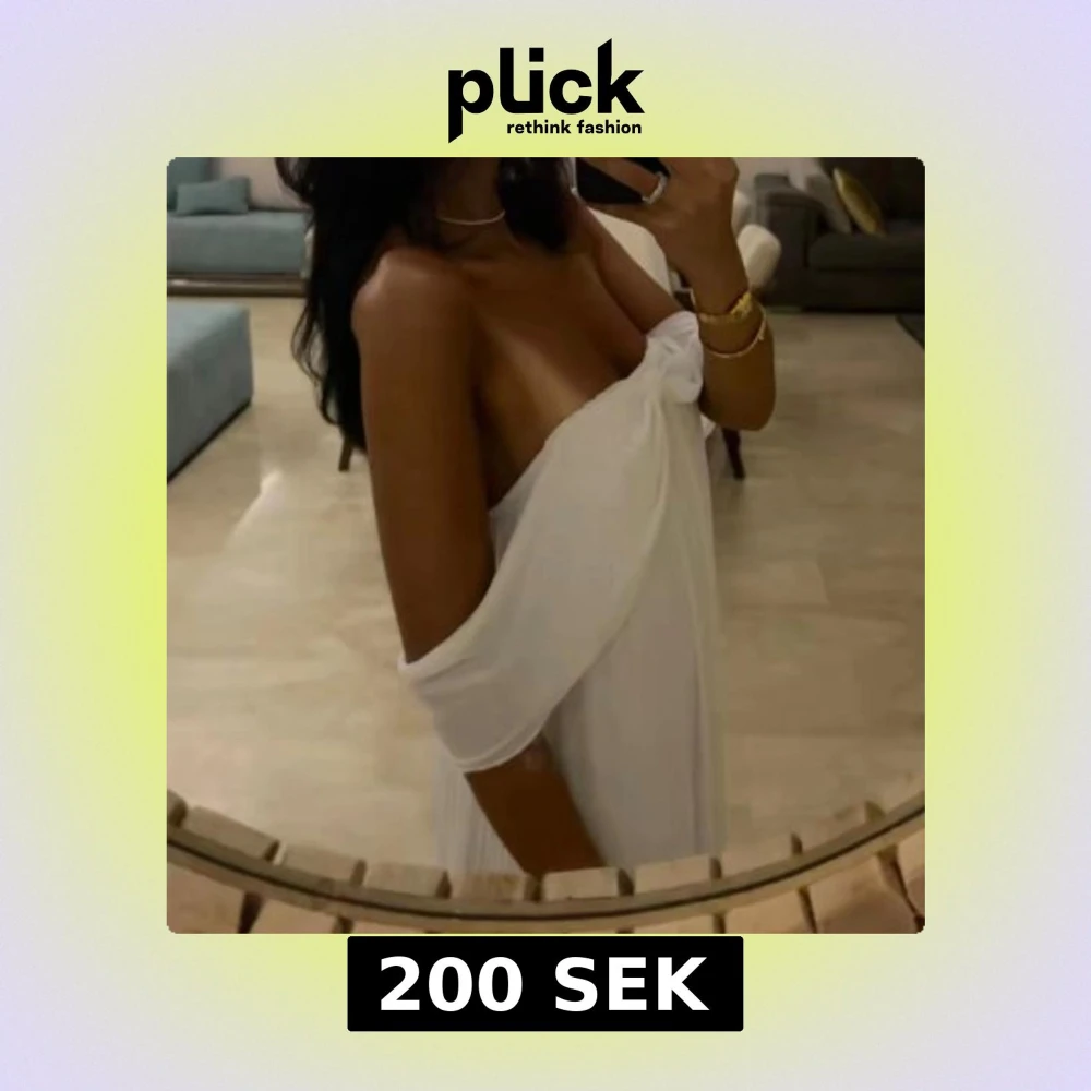 Säljer en superfin vit långklänning med offshoulder. Storlek S