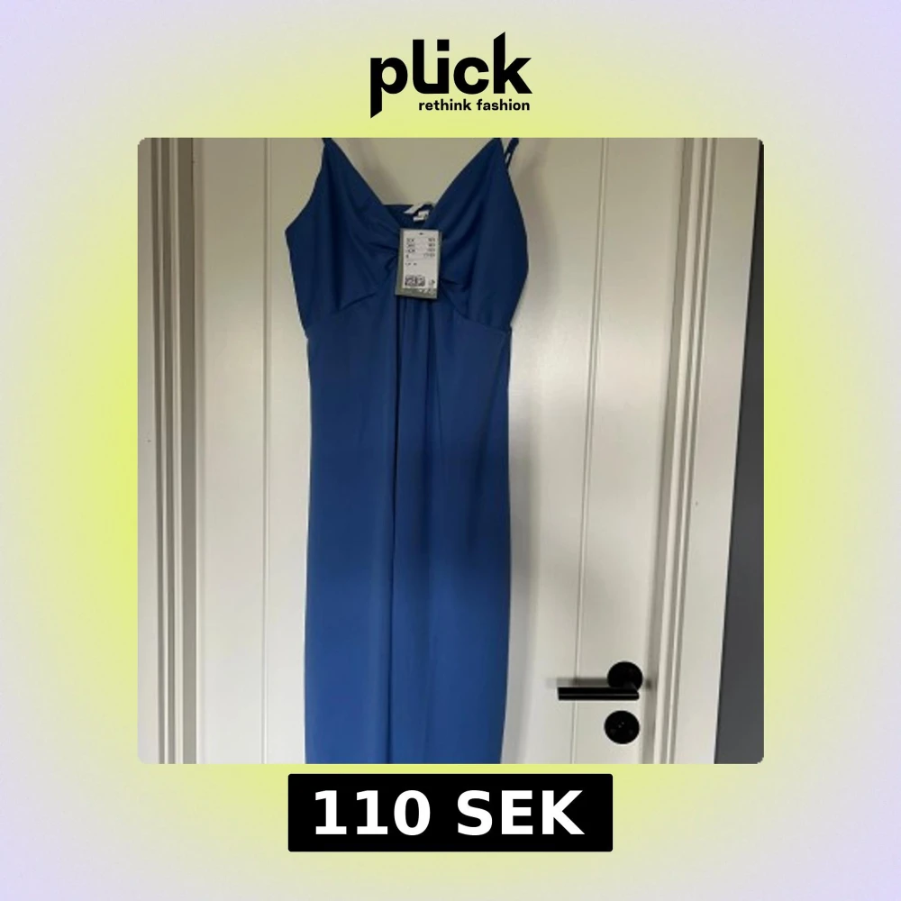 Blå klänning som aldrig är använd, något ljusare i verkligheten.