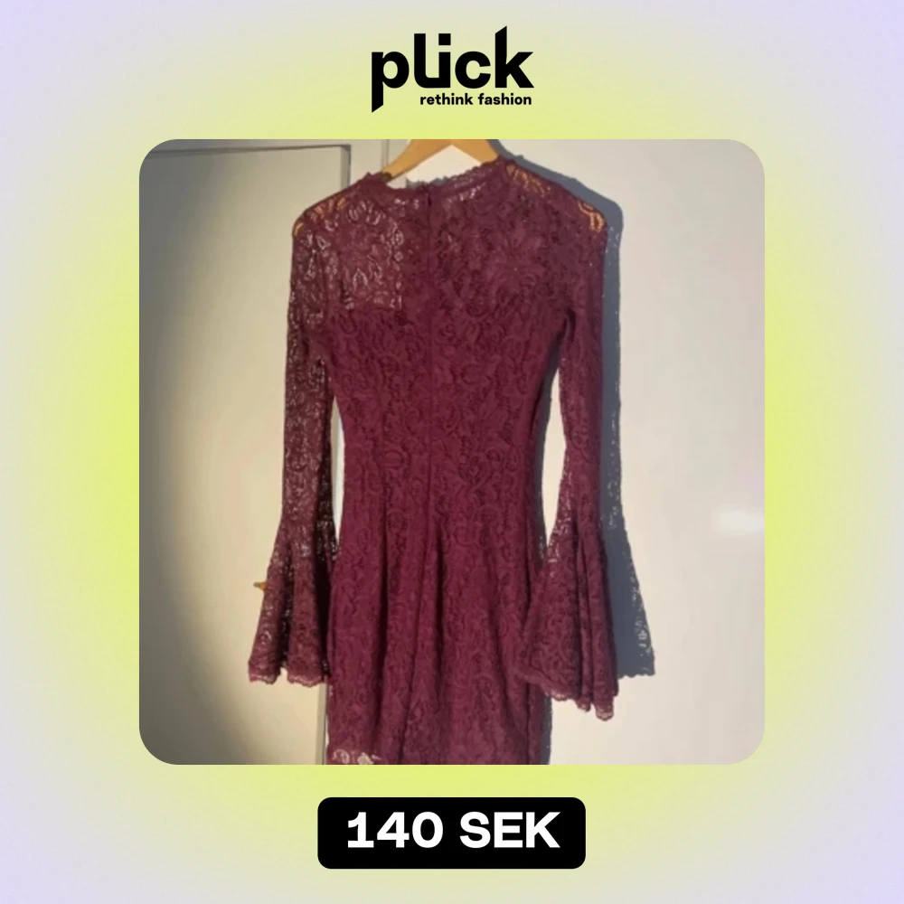 Spetsklänning med lite vidare ärmar. Vinröd/plommonlila