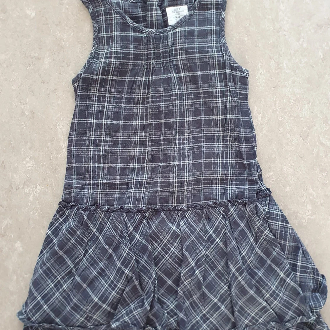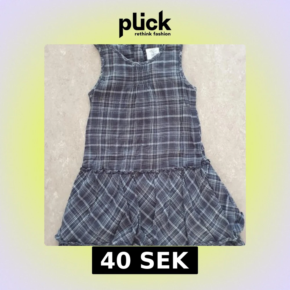 Snygg grå ärmlös klänning från H&M med vitt rutmönster och volang nertill. Klänningen har en avslappnad passform och är tillverkad i mjuk bomull, perfekt för en cool och bekväm stil.
