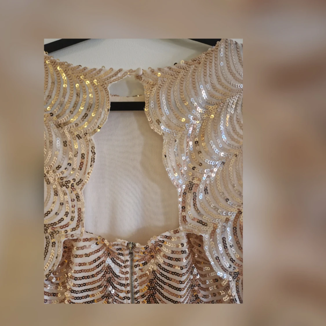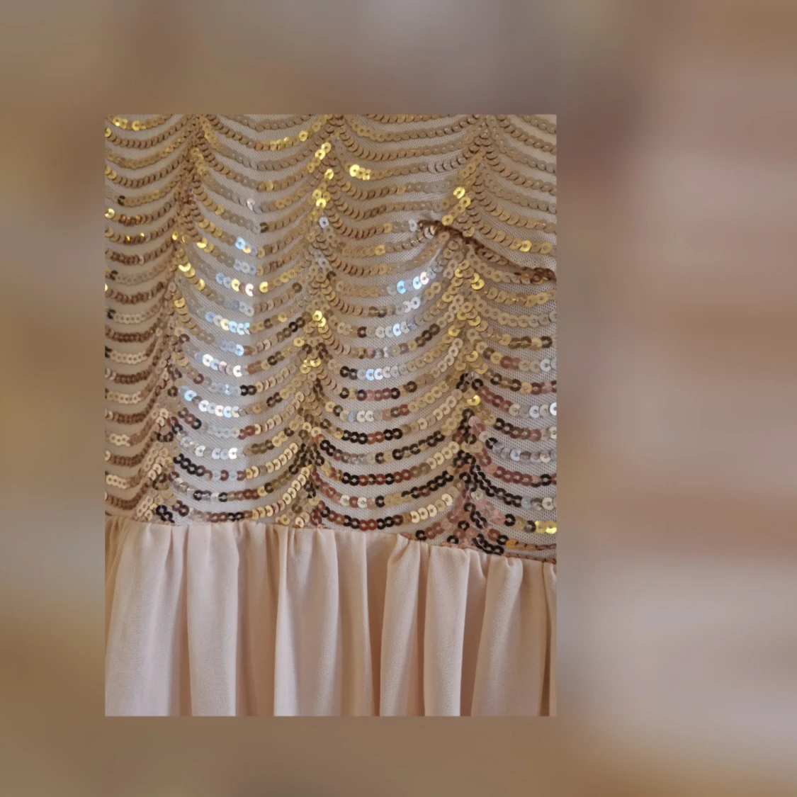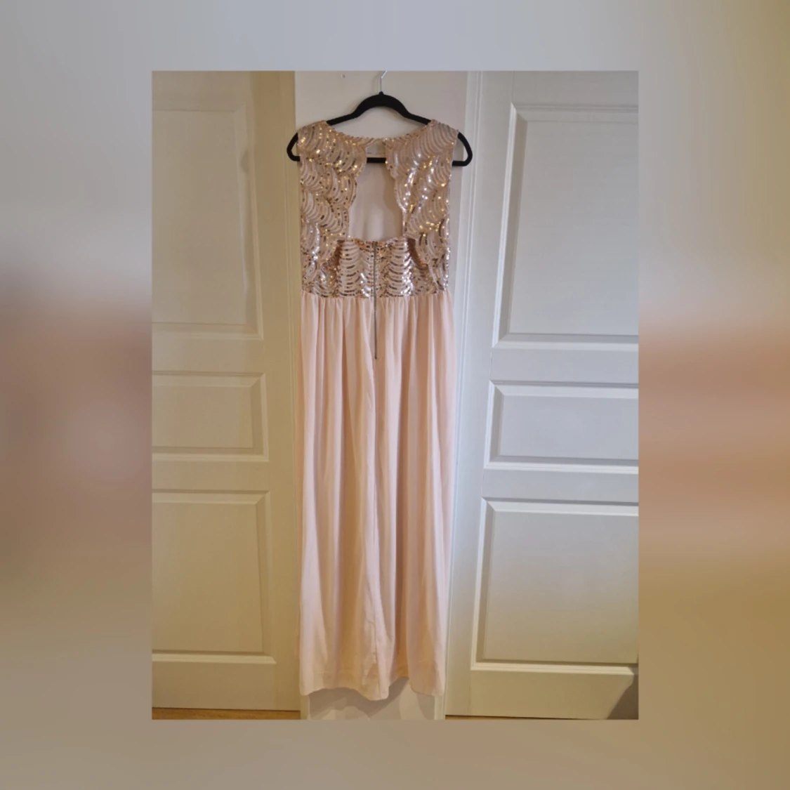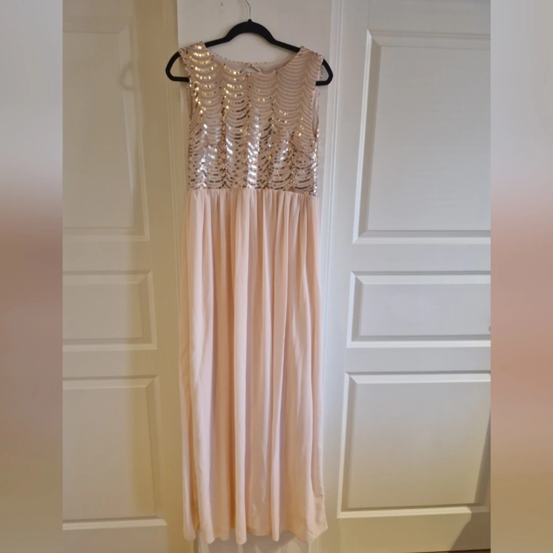 Fin aftonklänning som enbart använts 1 gång. Rosa/persikofärgad med fina paljetter i rosé.