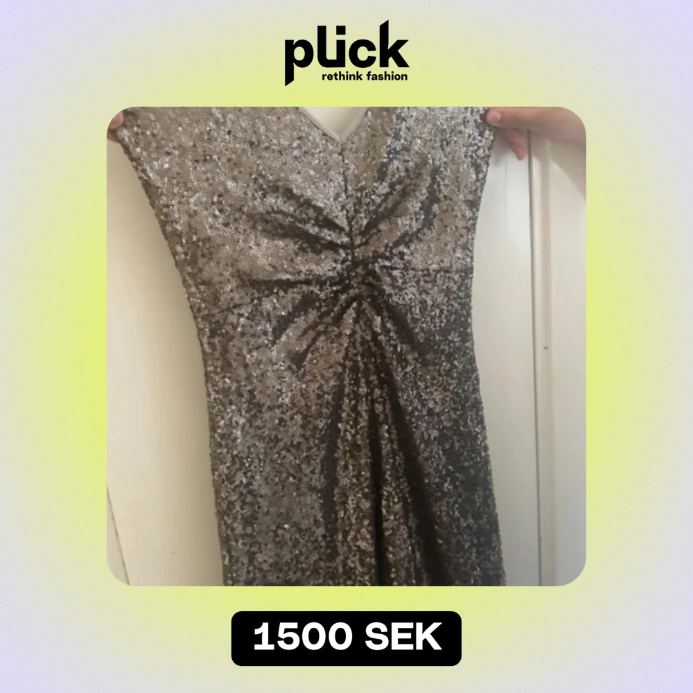 Glittrig axelbandslös kortklänning - Världens snyggaste festklänning som jag älskar, men som tyvärr blivit för liten!!!❣️Endast använd en gång och köpte helt ny här på plick!! Säljs inte längre och väldigt efterfrågad! Skriv för prisförslag!❤️‍🔥❤️‍🔥(har även axelband till)