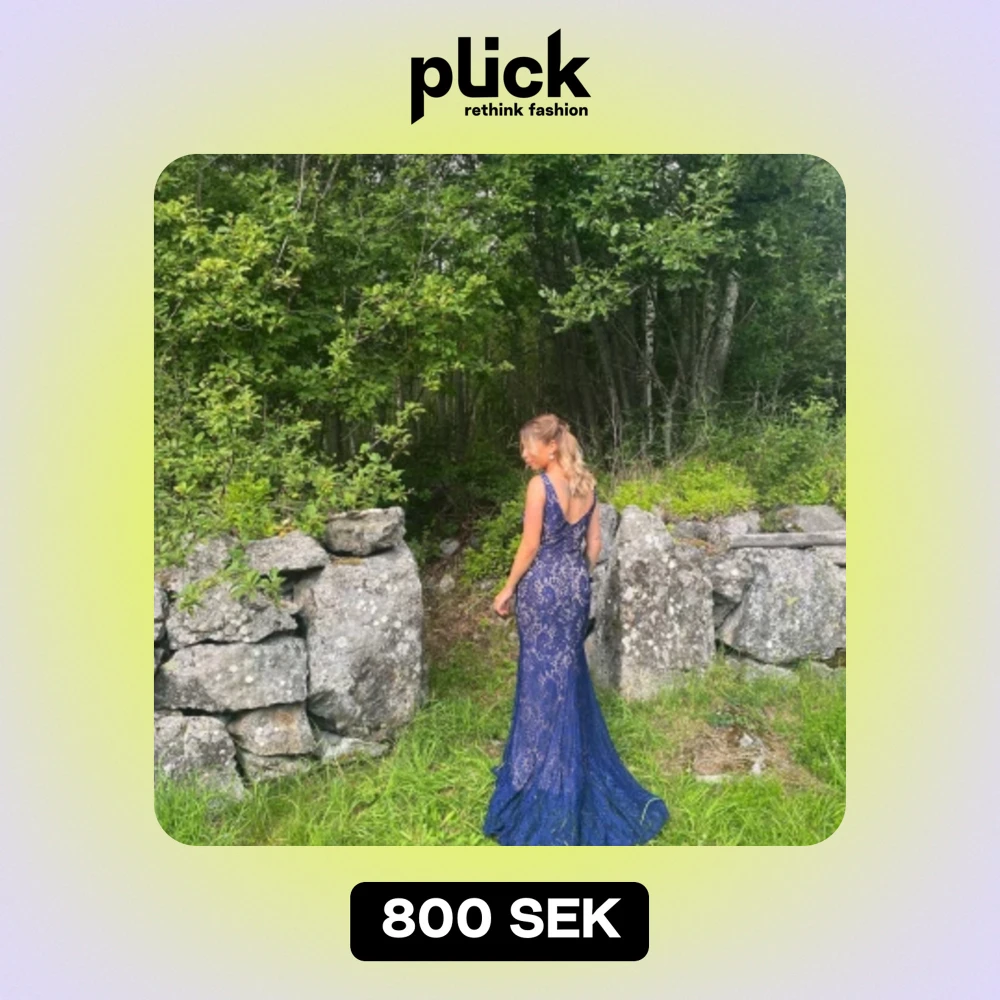 Säljer en superfin mörkblå långklänning i spets (beige underklänning). Klänningen har en v-ringad rygg, boatneck framtill och är ärmlös, perfekt för bal, bröllop eller andra speciella tillfällen. Använd endast en gång, nyskick. Nypris 1500:-