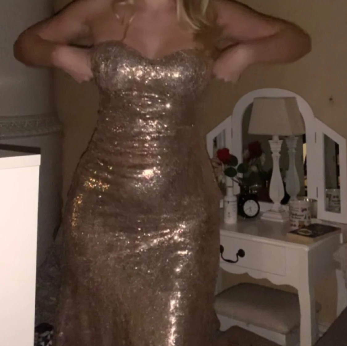 Säljer nu denna balklänning som endast är använd på denna fotografering💕strl S/M