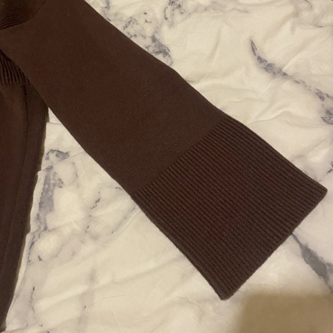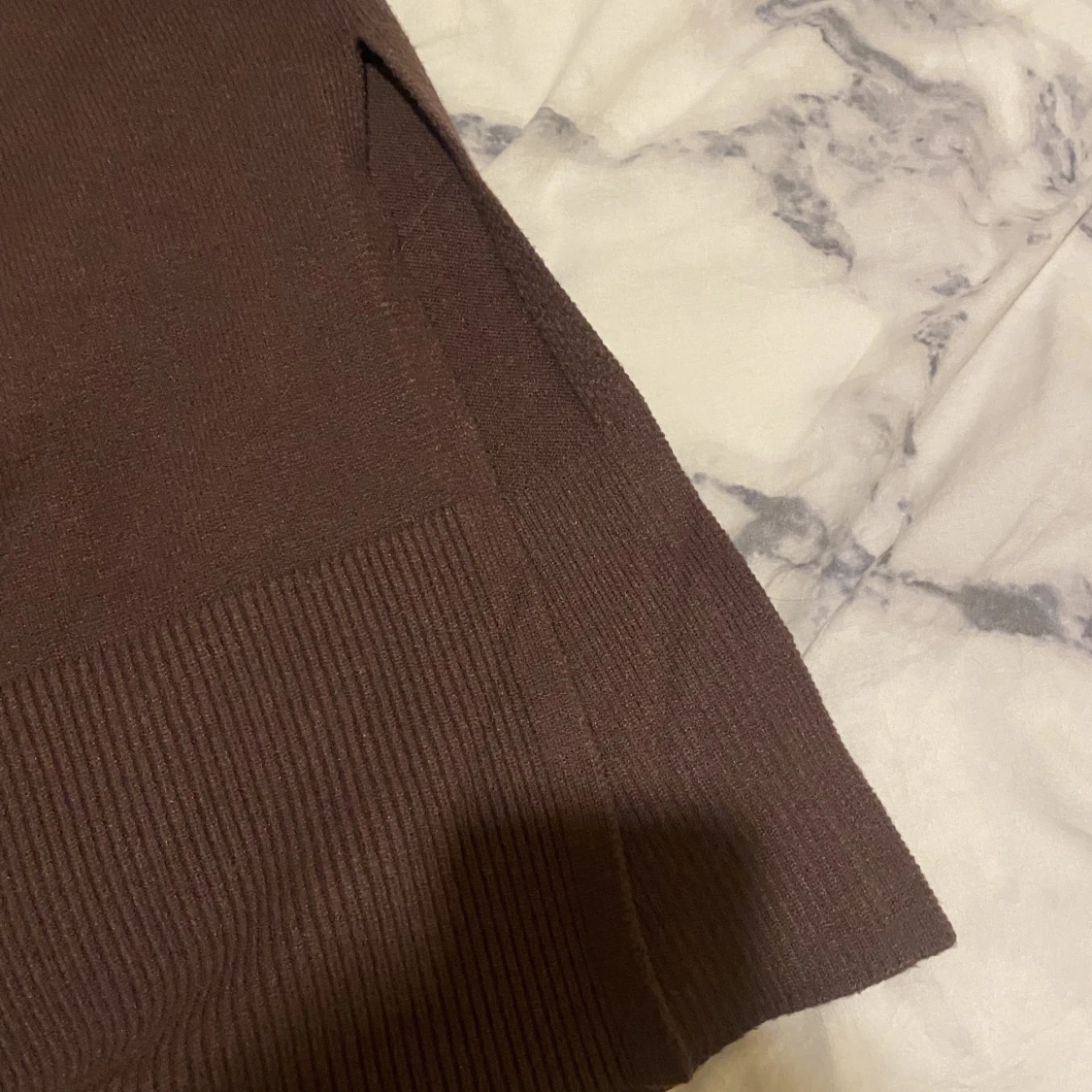 En brun fin stickad klänning från bikbok i storlek XS, använd fåtal gånger. Går under knäna och är 168. Den har en slits på sidorna och vida armar. 🤎