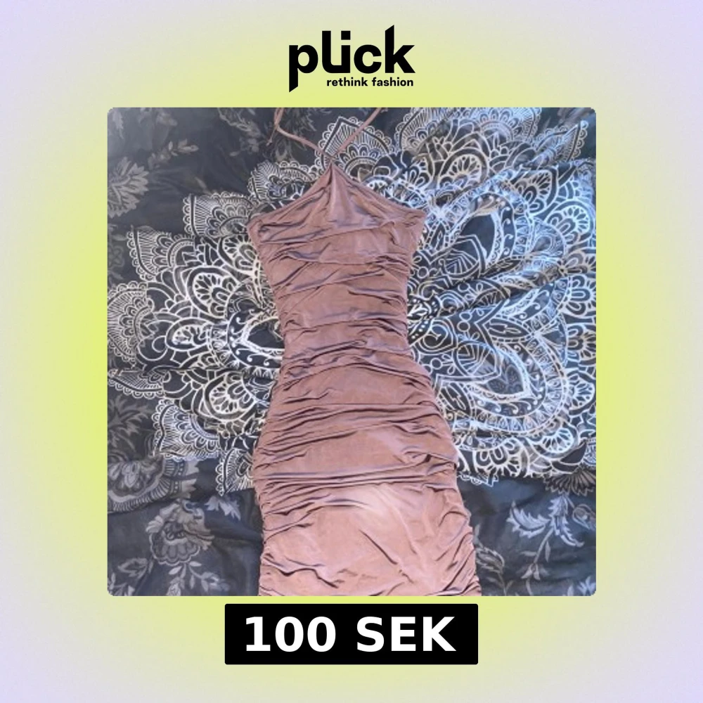 Supersnygg brun klänning från BikBok med tunna band som man knyter runt nacken, aldrig använd🤎 storlek S