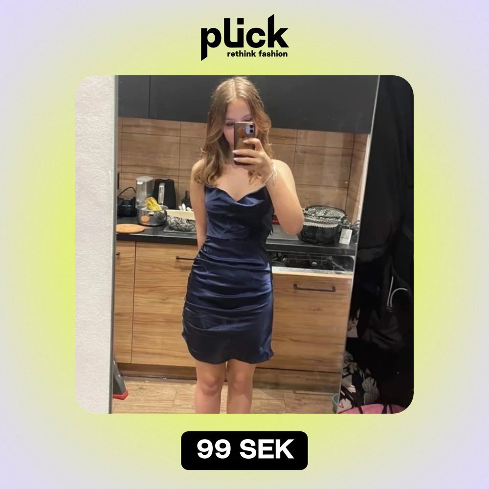 Säljer en elegant mörkblå axelbandslös klänning i satin. Perfekt för festliga tillfällen med sin figurnära passform och glansiga yta. Klänningen har en kort längd och en stilren design som framhäver figuren. Passar perfekt för en utekväll eller en speciell fest!