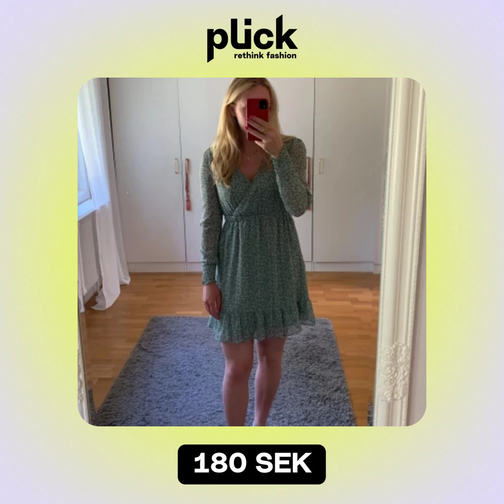 Supersöt grön- och vitblommig klänning💚 Storlek ca s 🌸