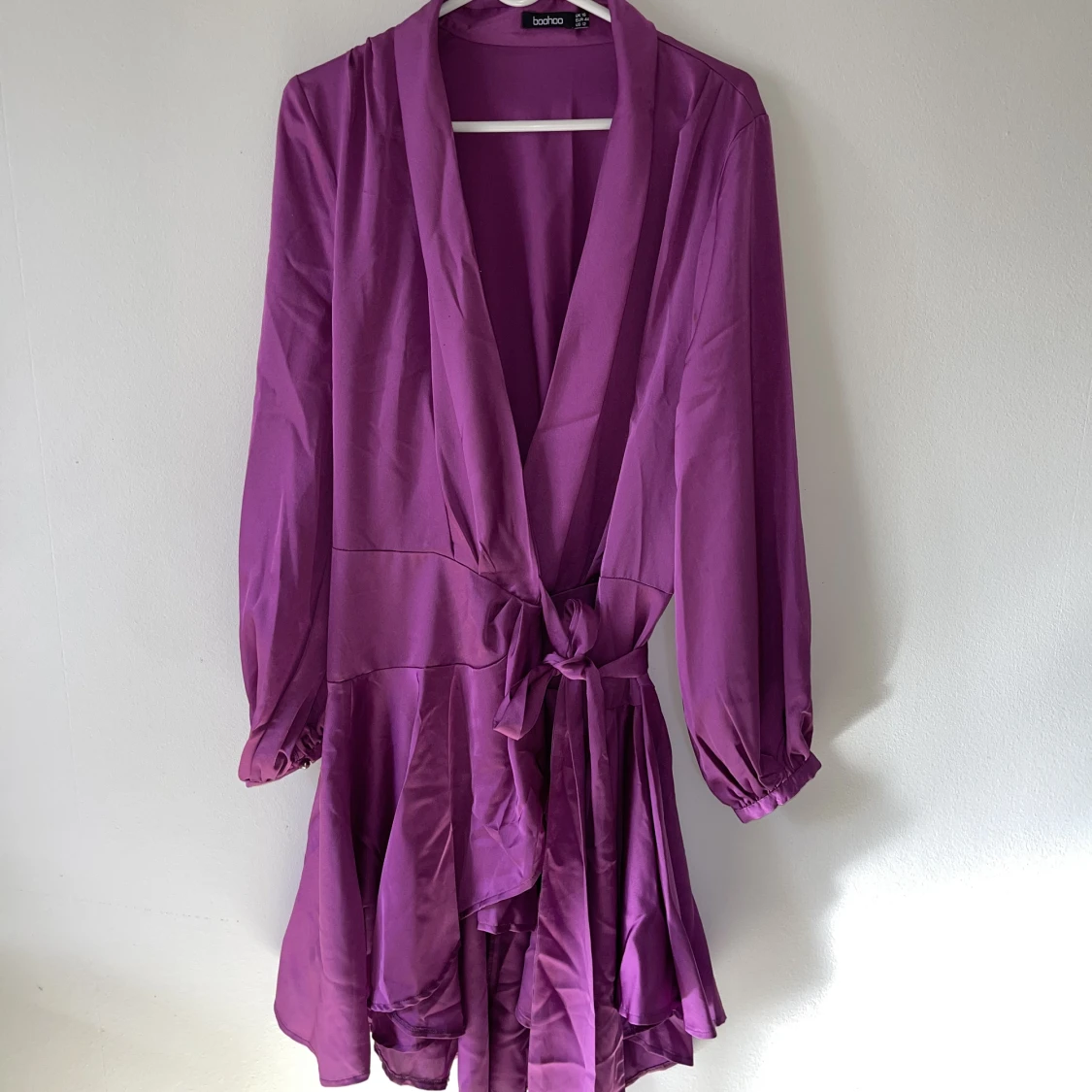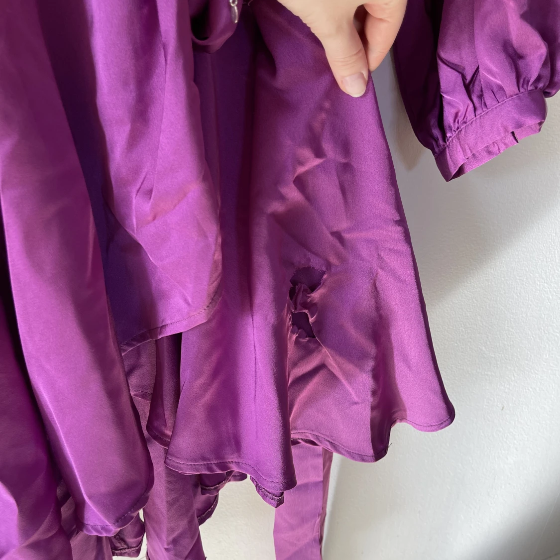 Lila omlottklännings som är använd 2 gånger, har ett litet hål från strykjärnet på ena volangen som inte syns när man använder den för den sitter på en inre volang, se sista bilden 🌸