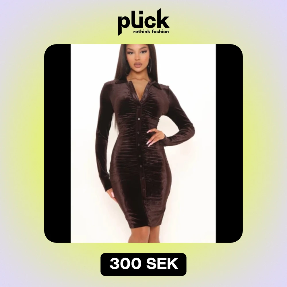 Jättefin brun sammet klänning, sitter perfekt. Sålde den ljusblåa förut, dags att sälja denna också. Perfekt skick, använd en gång. Helt slut. XS men passar mig som brukar ha S.