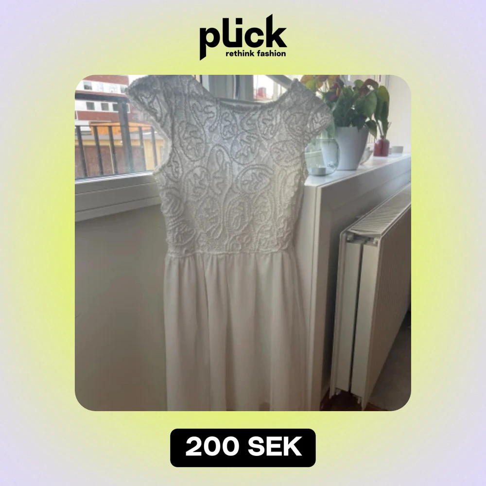 Vit klänning med spets och volang  - Så fin vit klänning med spets och långa puffärmar💕 Storlek S och mycket bra skick, aldirg använd av mig. Skriv gärna bud så diskuterar vi💕
