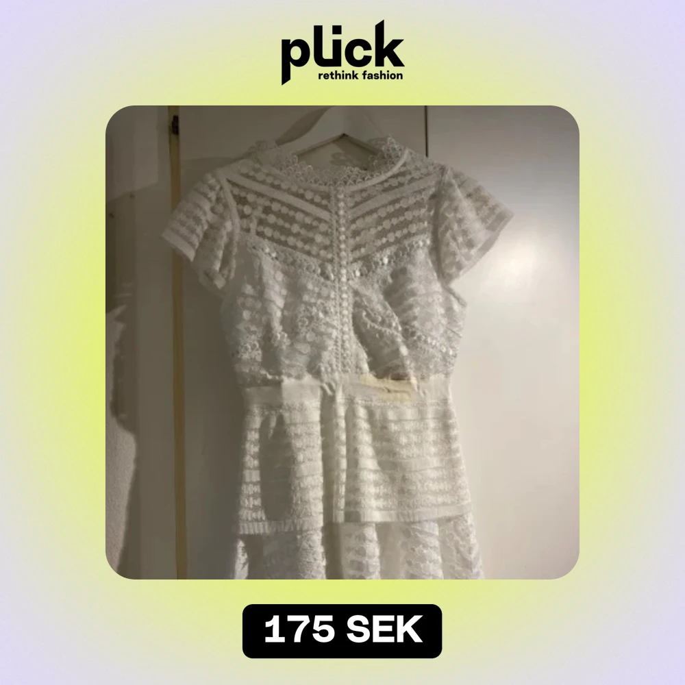 Klänning från by malina, nypris 2000kr, är en fläck på vänster framsida under bröstet men bör gå att få bort efter en rejäl tvätt. Hög krage och öppen rygg.