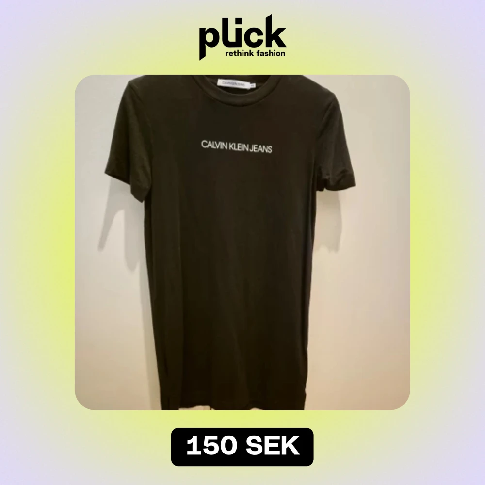 Svart tshirt klänning från märket Calvin Klein. Storlek XS. Helt oanvänd. Har en liten slits på vardera sida. Mjuk och skön material, 100% bomull. Lagom längd på klänningen.