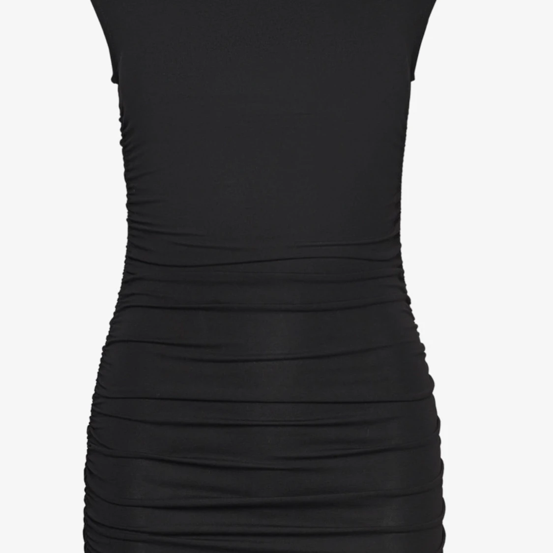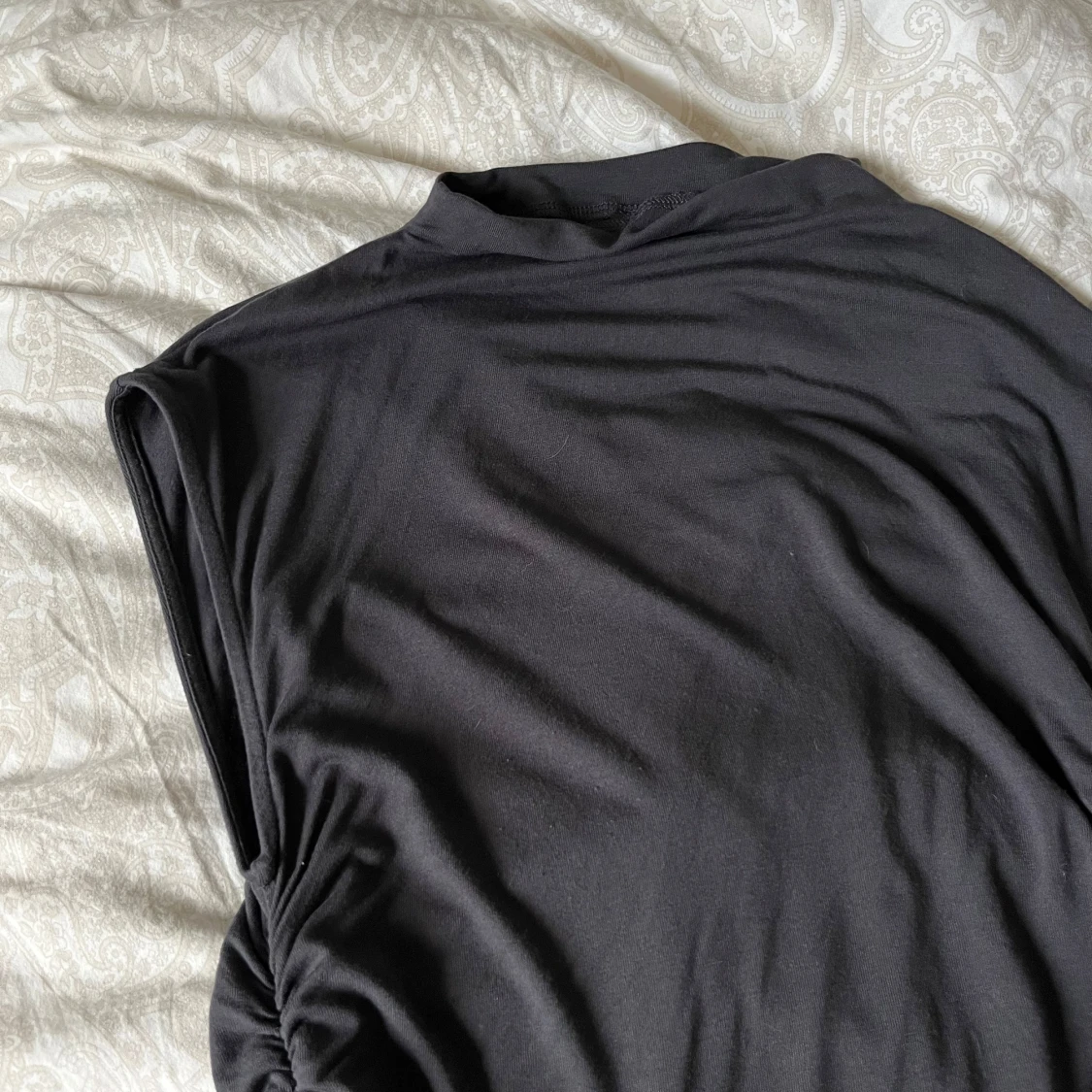 Svårt och få till bild på klänningen så ligger en modell bild på den. Super skönt material, jätte stretchiga och går in lite i sidorna för att framhäva ens kropp. Enbart använt den 2 gånger. Svårt att se färg men den är mörk mörk grå.