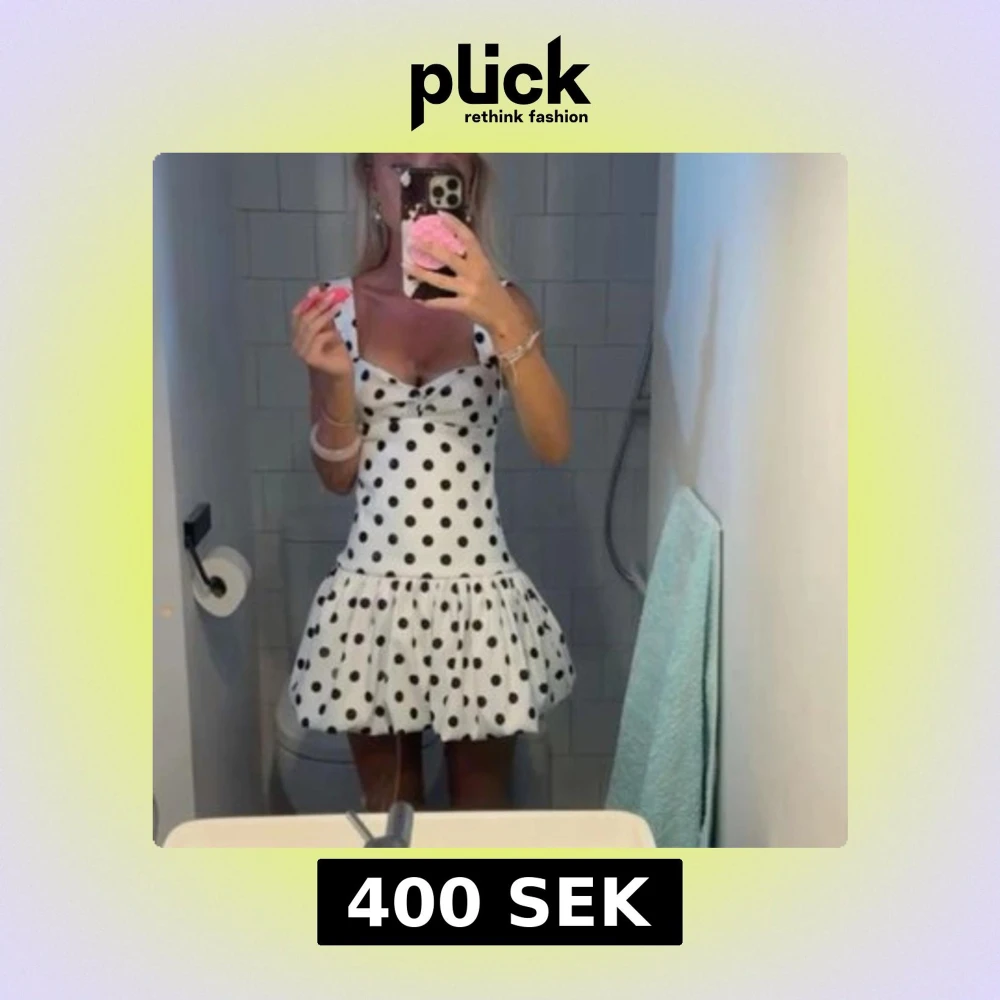 Superfin vit kortklänning med svarta prickar och volang nedtill. Klänningen har breda axelband och en snygg v-ringning framtill. Perfekt för dig som gillar lekfulla och trendiga plagg med lite extra attityd.