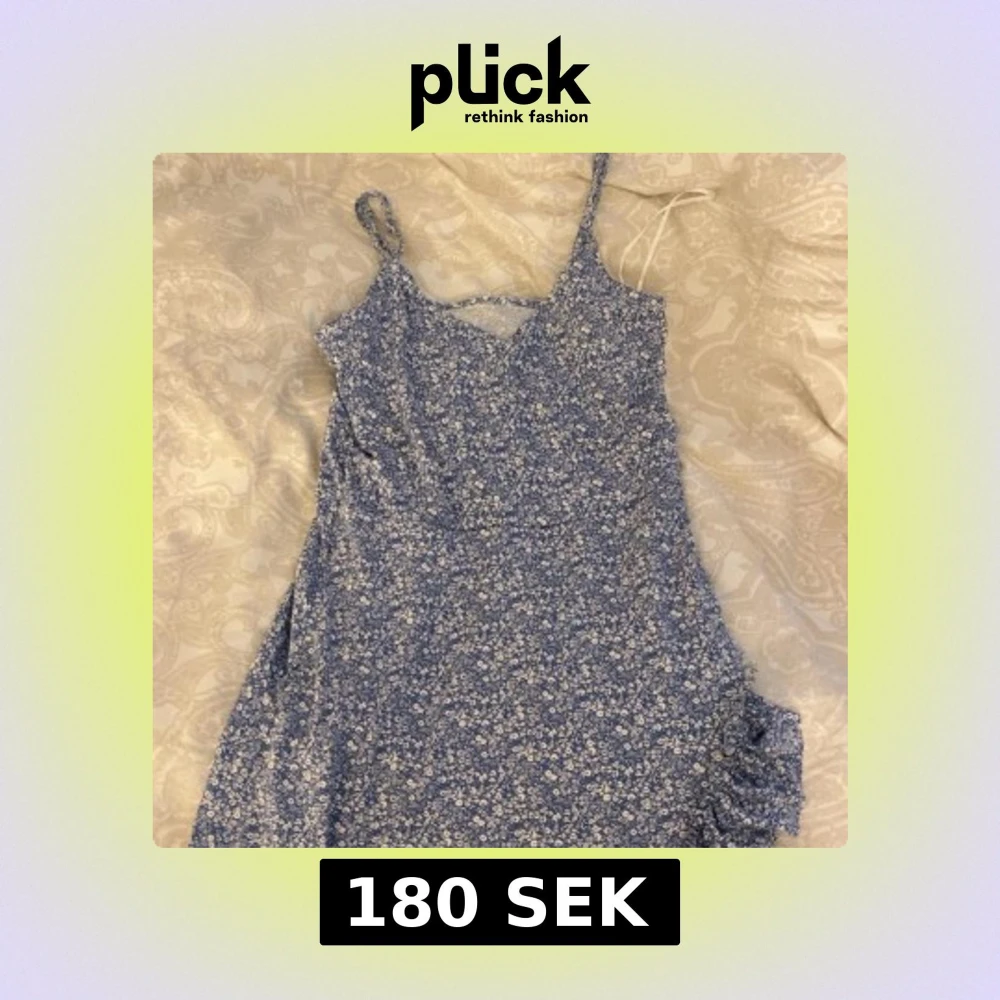 Blå blommig klänning från Gina. Lappen är borta men den är från gina young. Skulle säga storlek xxs. Aldrig använd