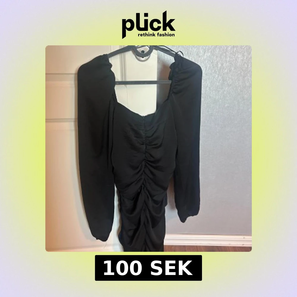 En fin och len svart klänning som har lite veck. Den är snärad fram vid brösten och har en dragkedja baktill. Väldigt fin! 💓