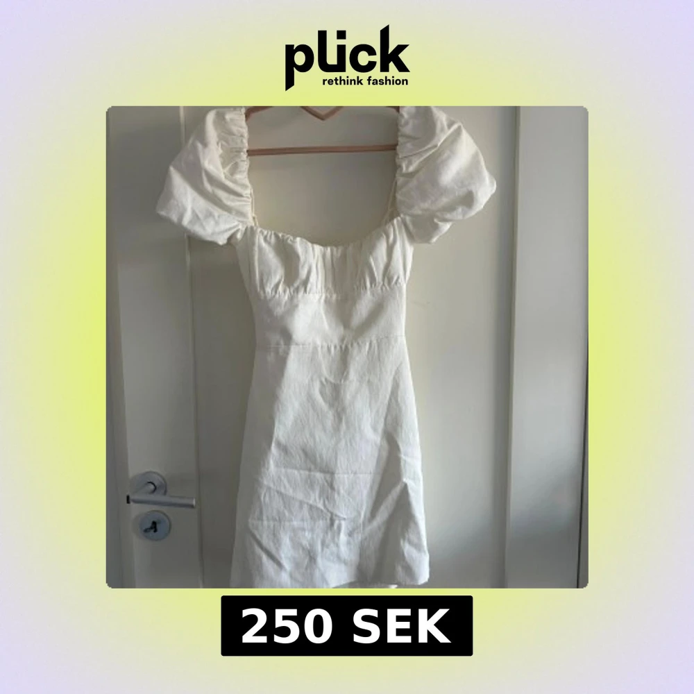 Jätte fin klänning från Zara i storlek S. Puff ärmar och öppen rygg med snörning. Perfekt till avslutning eller studenten! Bara använd en gång, inga defekter, så som i ny skick!