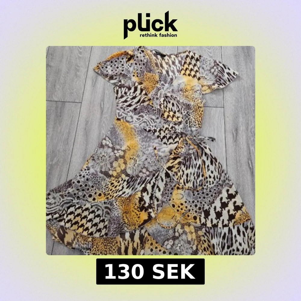 Snygg mönstrad klänning från Shein i olika djurmönster och geometriska former. Klänningen har en omlott-design med knytband i midjan och korta ärmar och massor av volanger! Perfekt för en unik och trendig stil. Storlek S💋🐆🐅 Som nytt skick