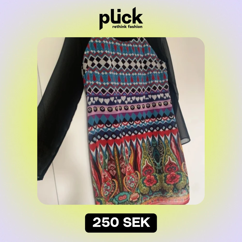 Klänning Desigual med transparent tyg över armarna och bak och en underklänning. Dragkedja bak. Stl 44 men känns som en 38-40