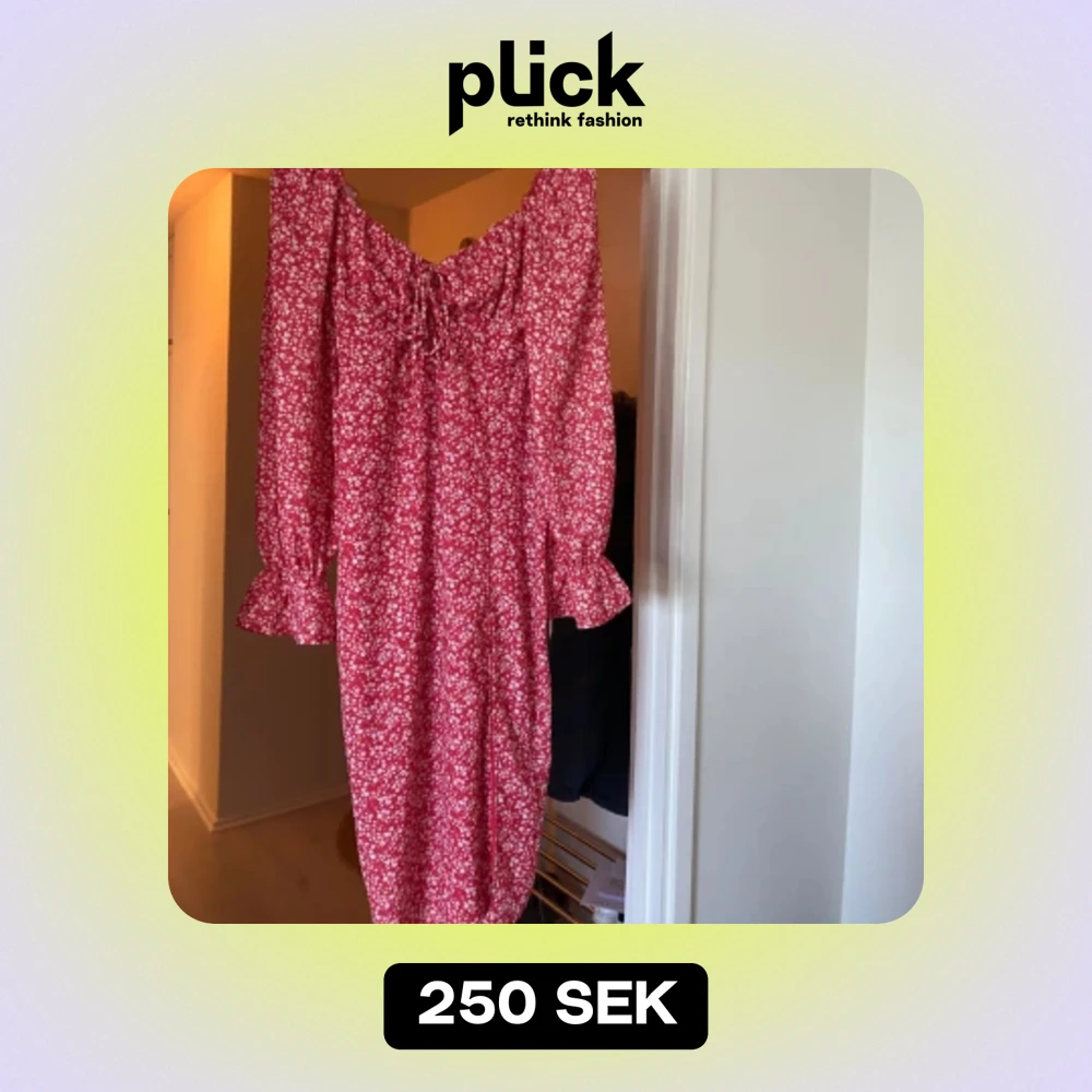 Jättefin röd klänning med vita blommor. Aldrig använd💓💓