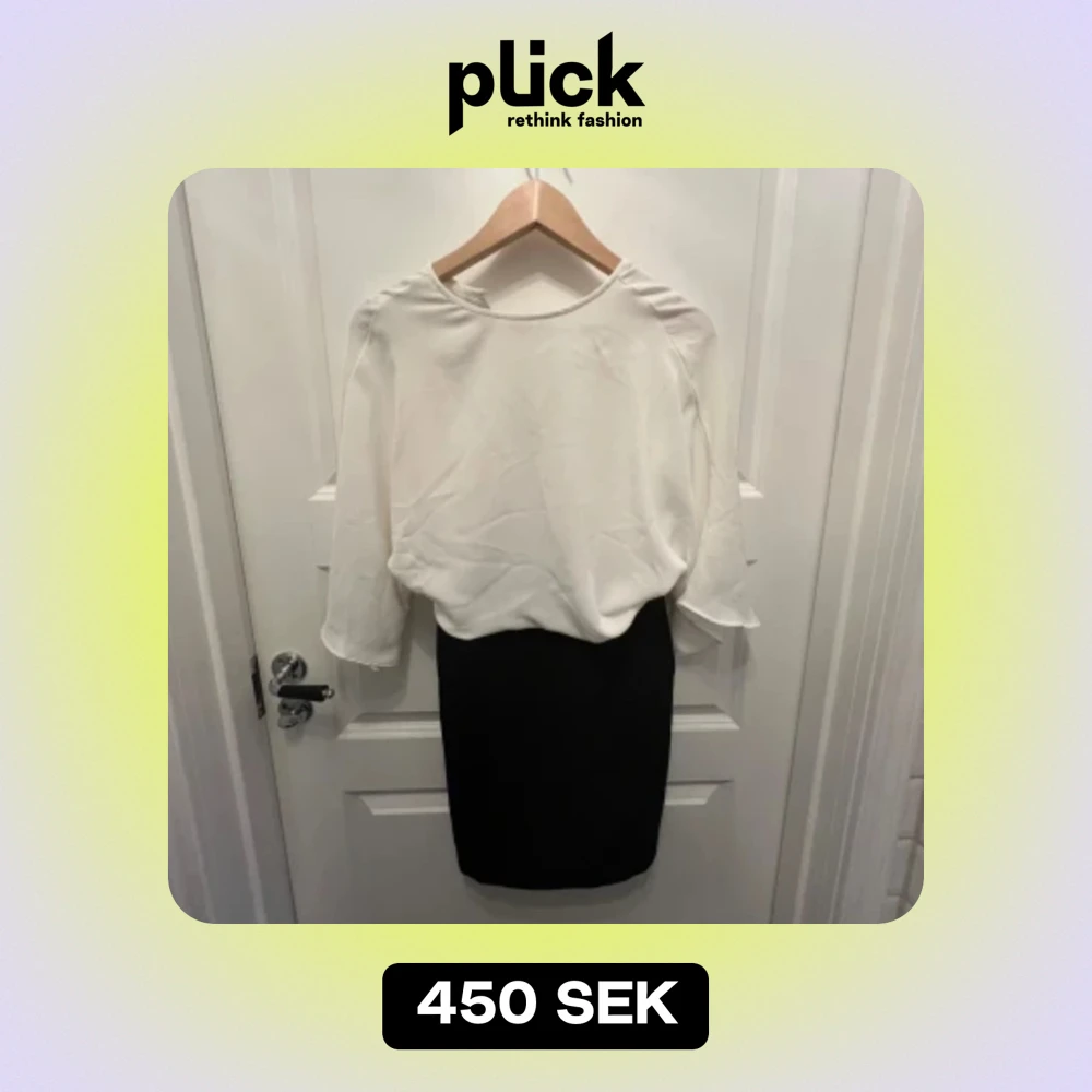 Svart och vit klänning med knapp på baksidan, passar både som formellt och fin-plagg. Oanvänd!!!