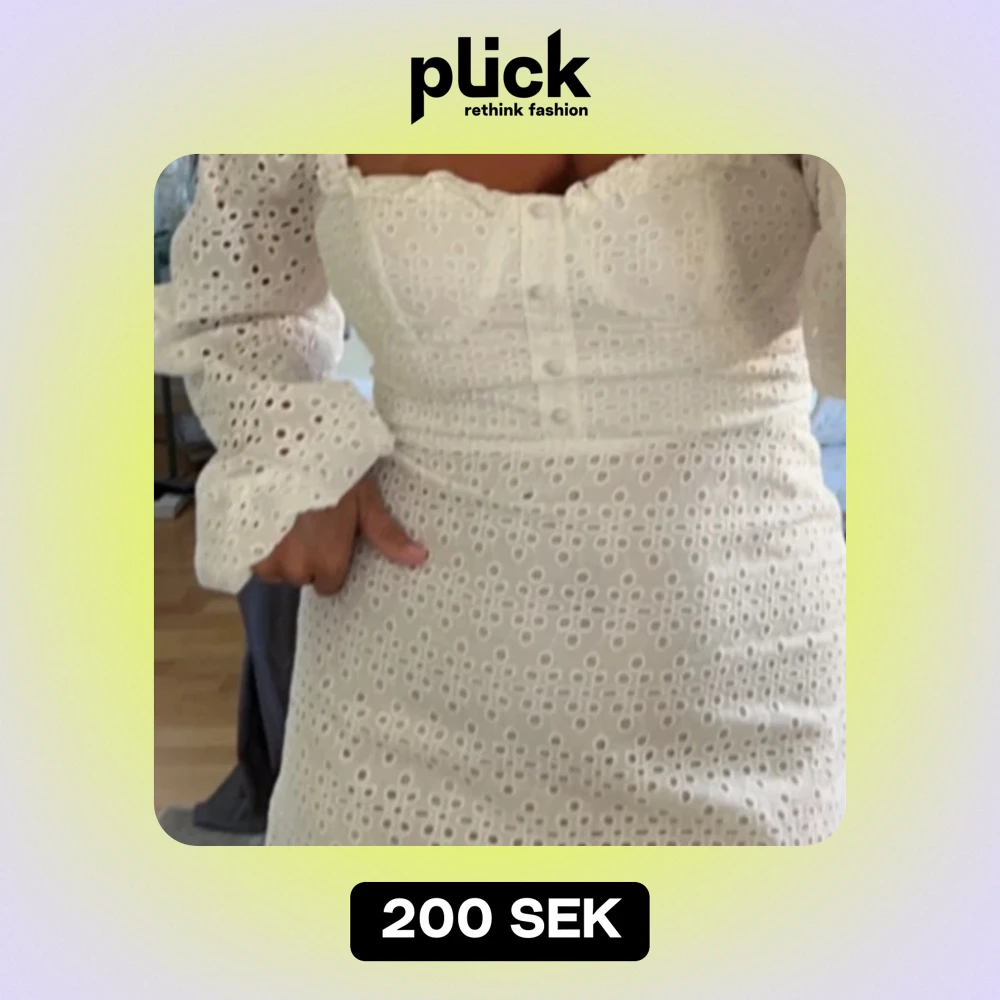 Säljer min fina vita klänning från boohoo endast använd en gång och stort tips till studenten. Slutsåld klänning. Spets. Storlek 40 men sitter mer som en 38/36. Den är för liten på mig.