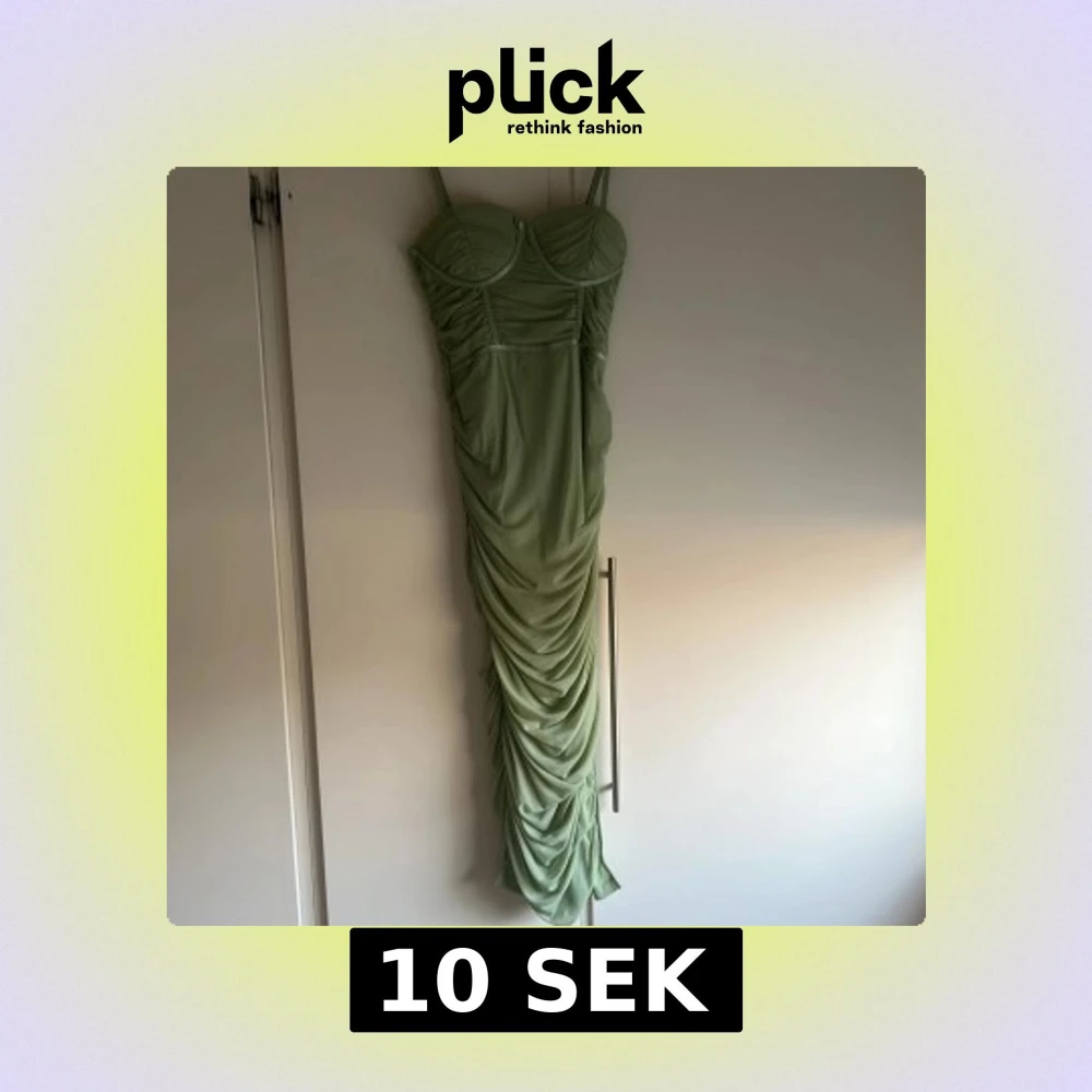 Elegant mint grön festklänning med smala axelband och rynkade detaljer. Klänningen har en figurnära passform. Endast använt 1 gång. Kontakta för fler bilder. Storlek Xs