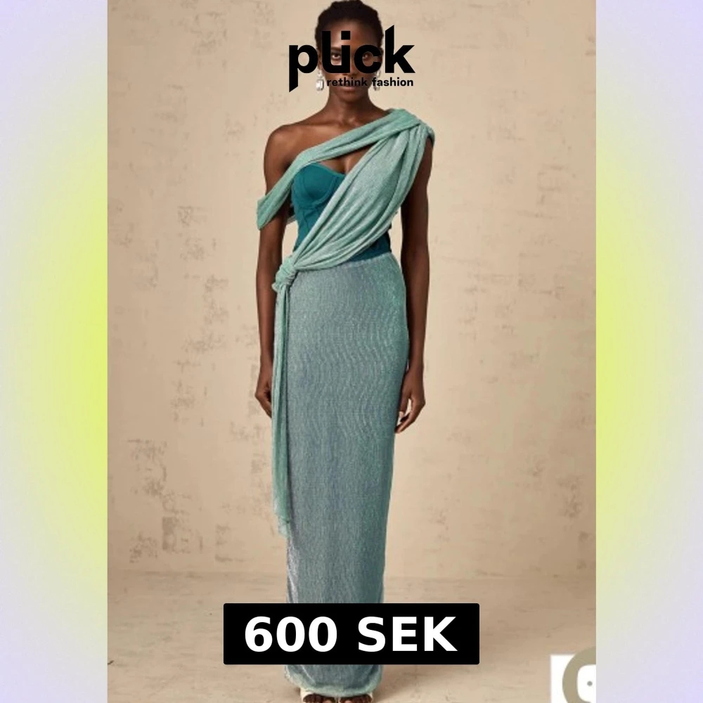 Säljer en elegant turkos långklänning med omlott-detalj och knyt vid midjan från miss rosier. Klänningen har en axelbandslös design med draperad effekt över axeln och en snygg slits baktill. Materialet är glittrigt och ger en lyxig känsla, perfekt för att sticka ut. Helt ny med prislapp. Köpt för 1800.