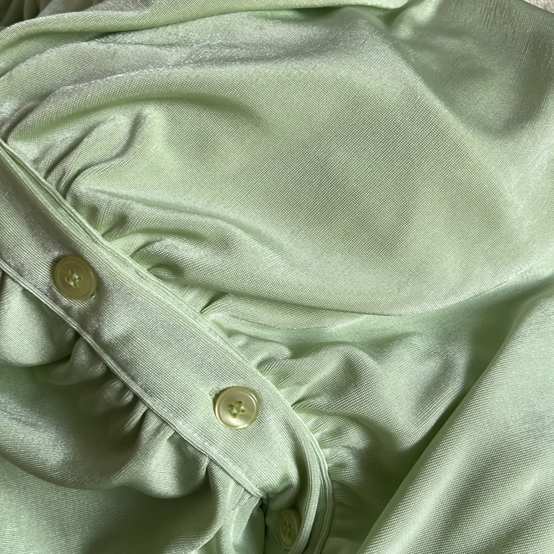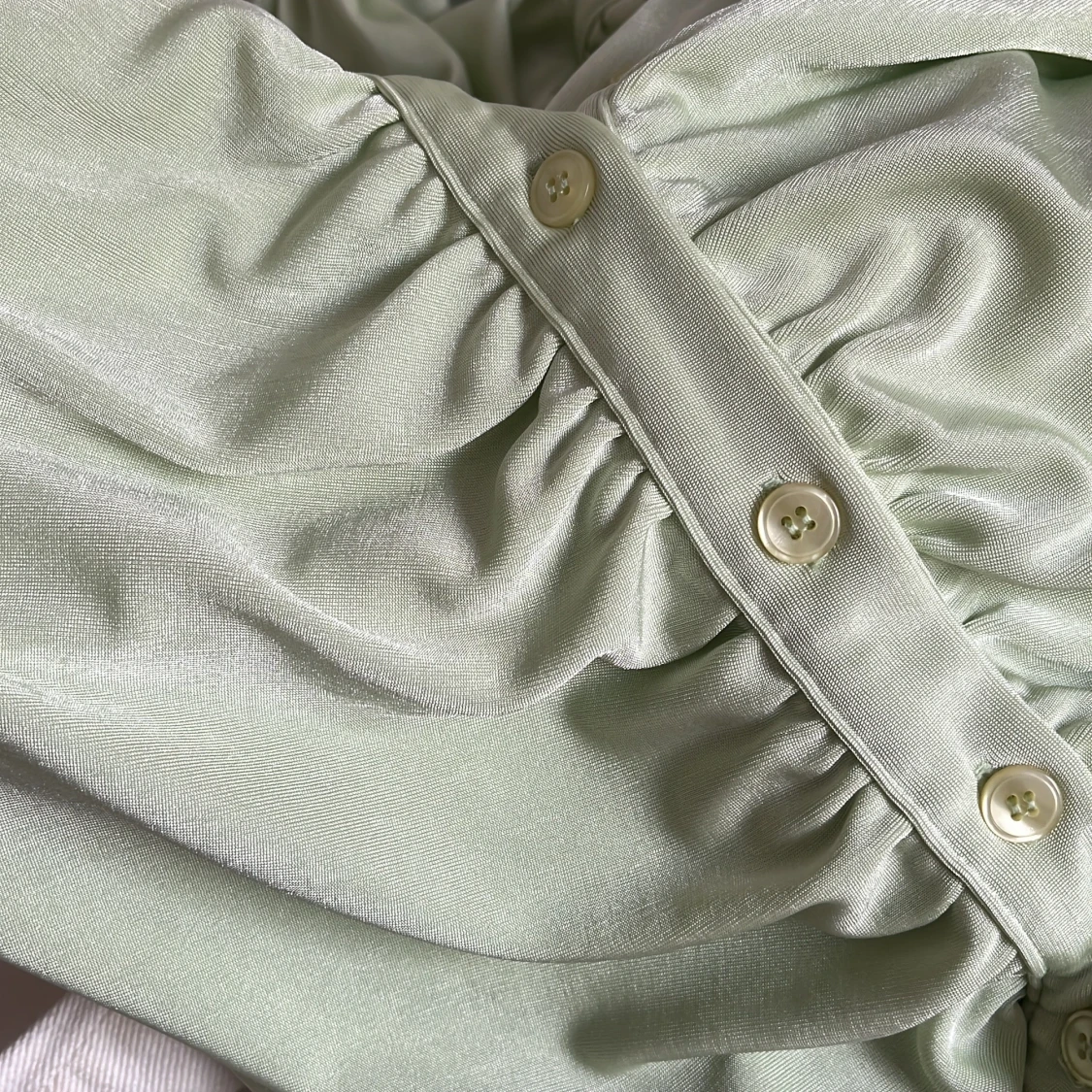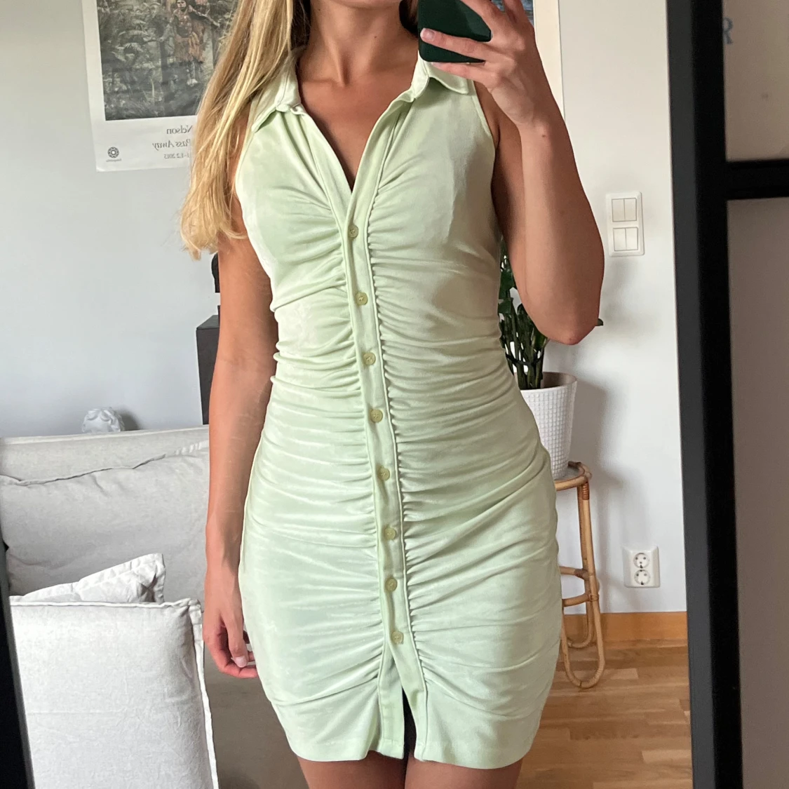Lindblomsgrön klänning från NA-KD i storlek M (jag har vanligtvis S) Den skiftar fint i färg och är i stretchigt material. Jag fraktar gärna - köparen står för frakten, annars hämtas klänningen i Tyresö/Globen 💞